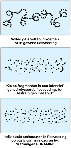 Nutramigen* PURAMINO*, dat is ontworpen om de nodige voedingsstoffen te verschaffen die normale groei en ontwikkeling ondersteunen, kan worden gebruikt als enige voedingsbron tot 6 maanden en als onderdeel van gemende voeding vanaf 6 maanden.
